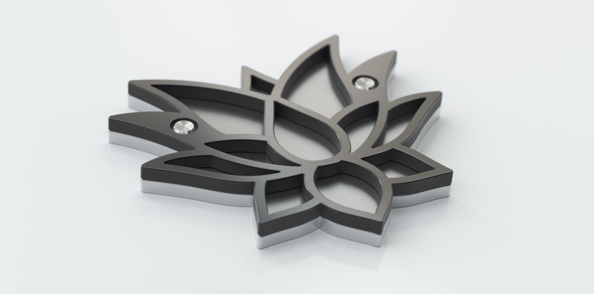 Handcrafted in stainless steel, LOTUS offers a new perspective with acutely sleek lines and sharp points. This vibrant arrangement is polished to a mirror-finish and glass bead blasted for a matte appearance. A rippling psychedelic pattern on the back creates an illusion of movement when it catches the light.